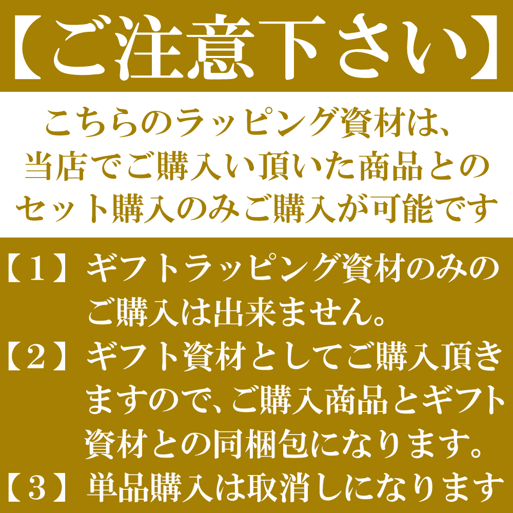 ギフト対応 贈り物にお祝いに日頃の感謝の気持ちを込めて大切な人へのギフトはもちろん、ご自分へのご褒美としてもどうぞ 【ギフト資材◆注意事項】 【1】ギフトラッピング資材のみでのご購入はできません 【2】ギフト資材としてご購入頂きますので、当店にてラッピングはせず、ご購入商品とギフト資材との同梱包になります 当店でお求め頂きました商品を、簡単に素敵なプレゼントギフトとしてラッピングできるセットです商品にあわせてお選び頂ける様、たくさんの種類をご用意お客様のお好みで、メッセージカード等をお入れ頂ける様、ラッピングセットは同梱包となります大変簡単なラッピングセットとなりますので、どなたでもお手軽に高級感溢れるギフトへラッピングが可能です※こちらはお客様で簡単にラッピングして頂ける様に、ラッピング資材でのお届けです当店でのラッピングは行っておりません ※より良いサービスご提供のため、ラッピングセットや写真等の仕様が予告なしにご変更となる場合が御座います予めご了承下さいませ ★