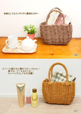 丈夫で軽く、水に濡れても平気!海、川などアウトドアやピクニックなど 屋外で使用して汚れても丸洗いできるので使い勝手も◎ プールバッグ、温泉バッグとしてもオススメのカゴバッグです。